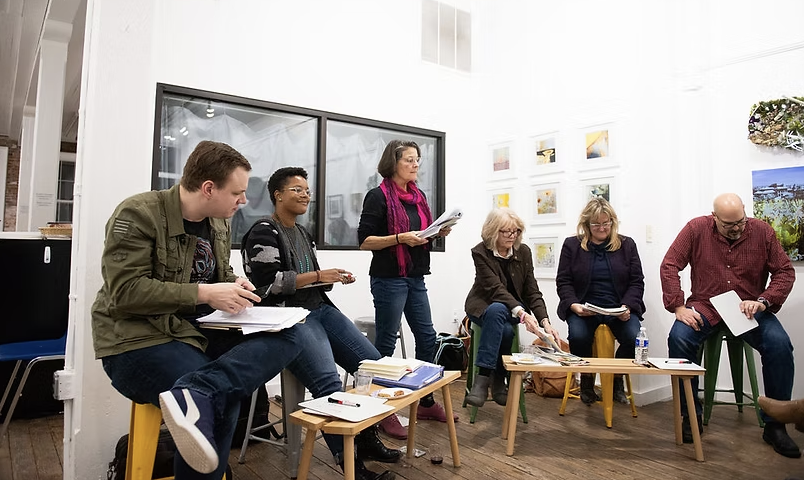 The group of poets, No River Twice, develops an interactive community performance in response to the screening of "Going to Mars: the Nikki Giovanni Project." At Princeton Public Library.